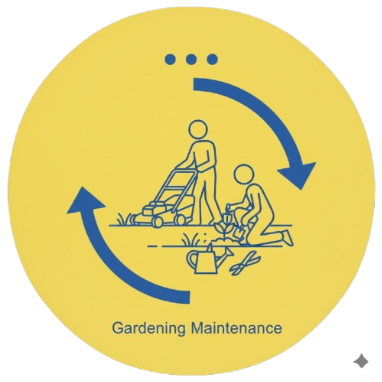 Lawn care, trimming, cleaning, and regular garden upkeep services.